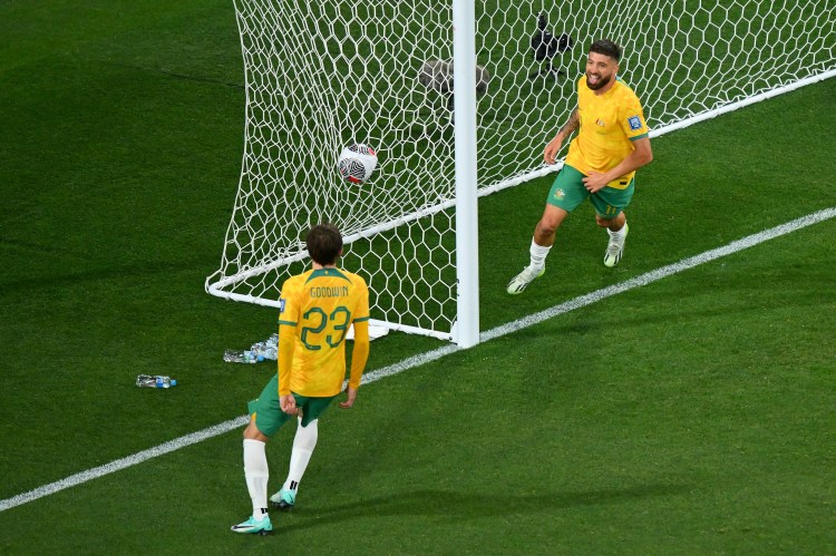 Australia took just four minutes to snatch the lead with Craig Goodwin’s out-swinging free-kick from the left finding Souttar, who guided a header into the top left corner.